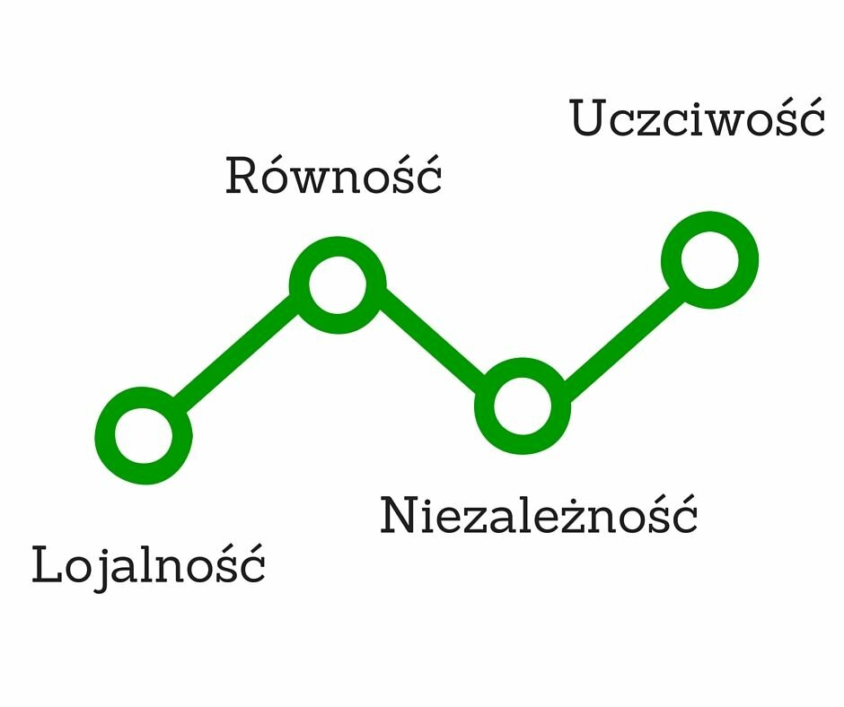 Test VALUES mierzy wewnętrzny system wartości, którymi kieruje się badany przy podejmowaniu decyzji. Cztery wartości to: